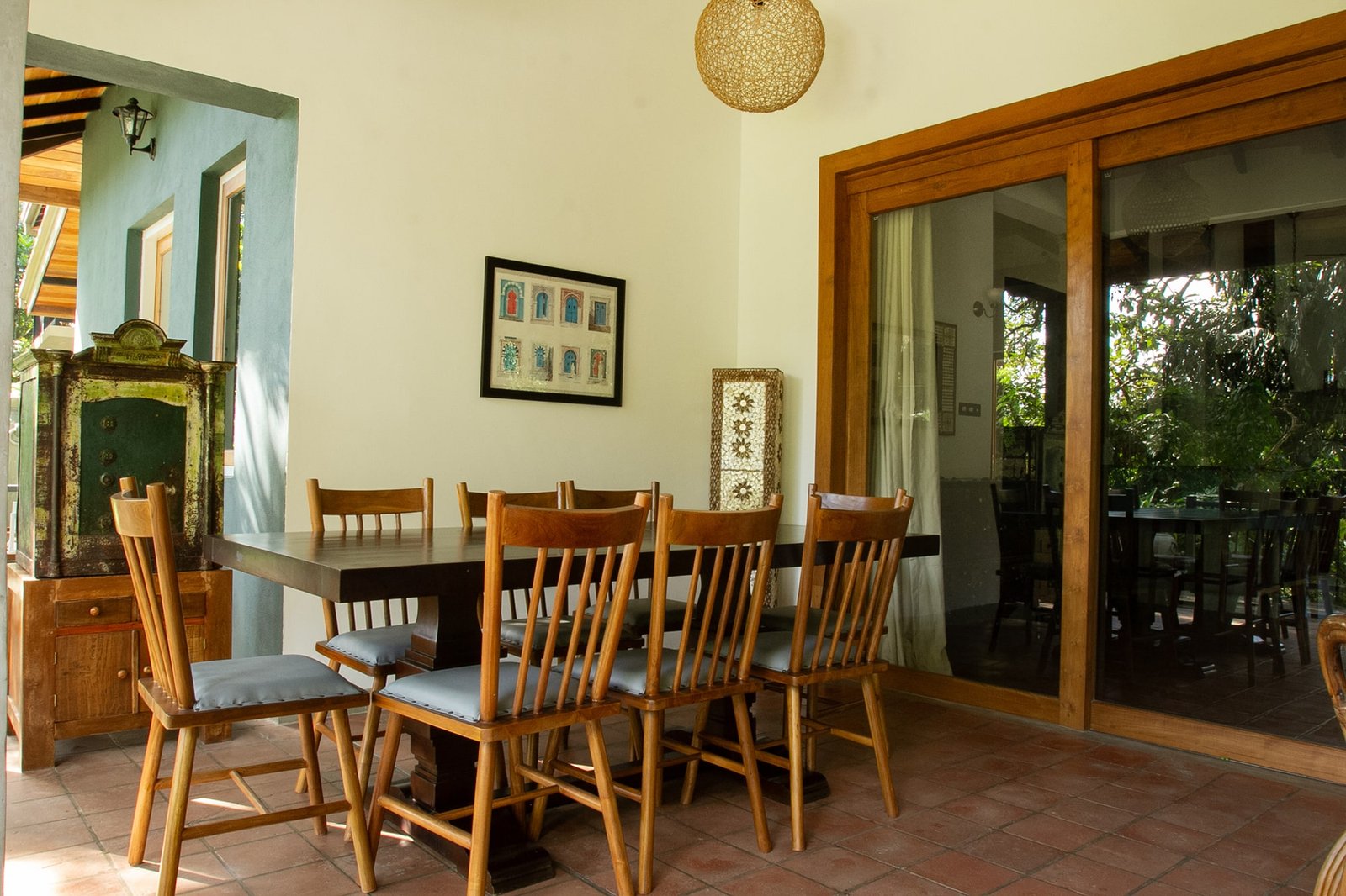 Dining Spaces Guests can dine indoors in the cozy dining room or outdoors on the verandah. The garden setting adds a peaceful ambiance for meals.