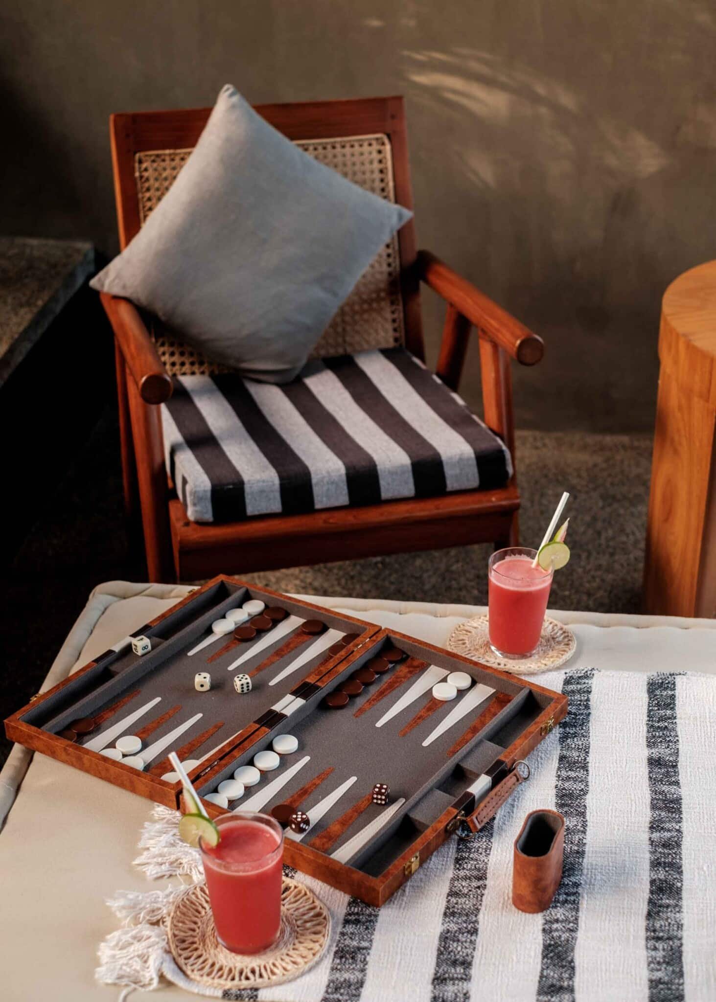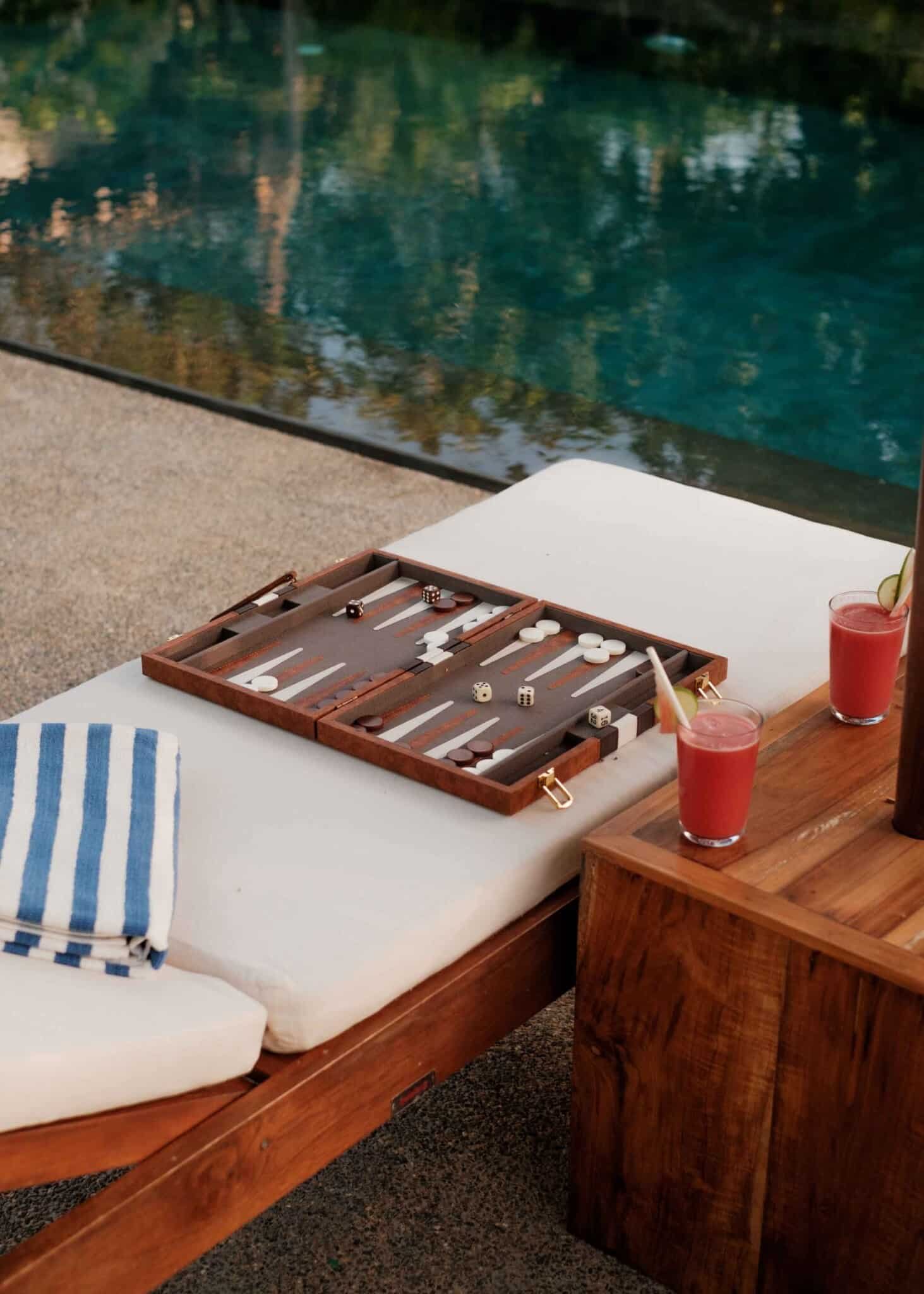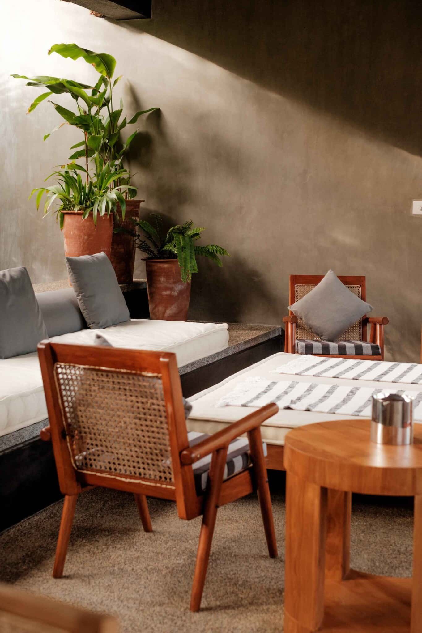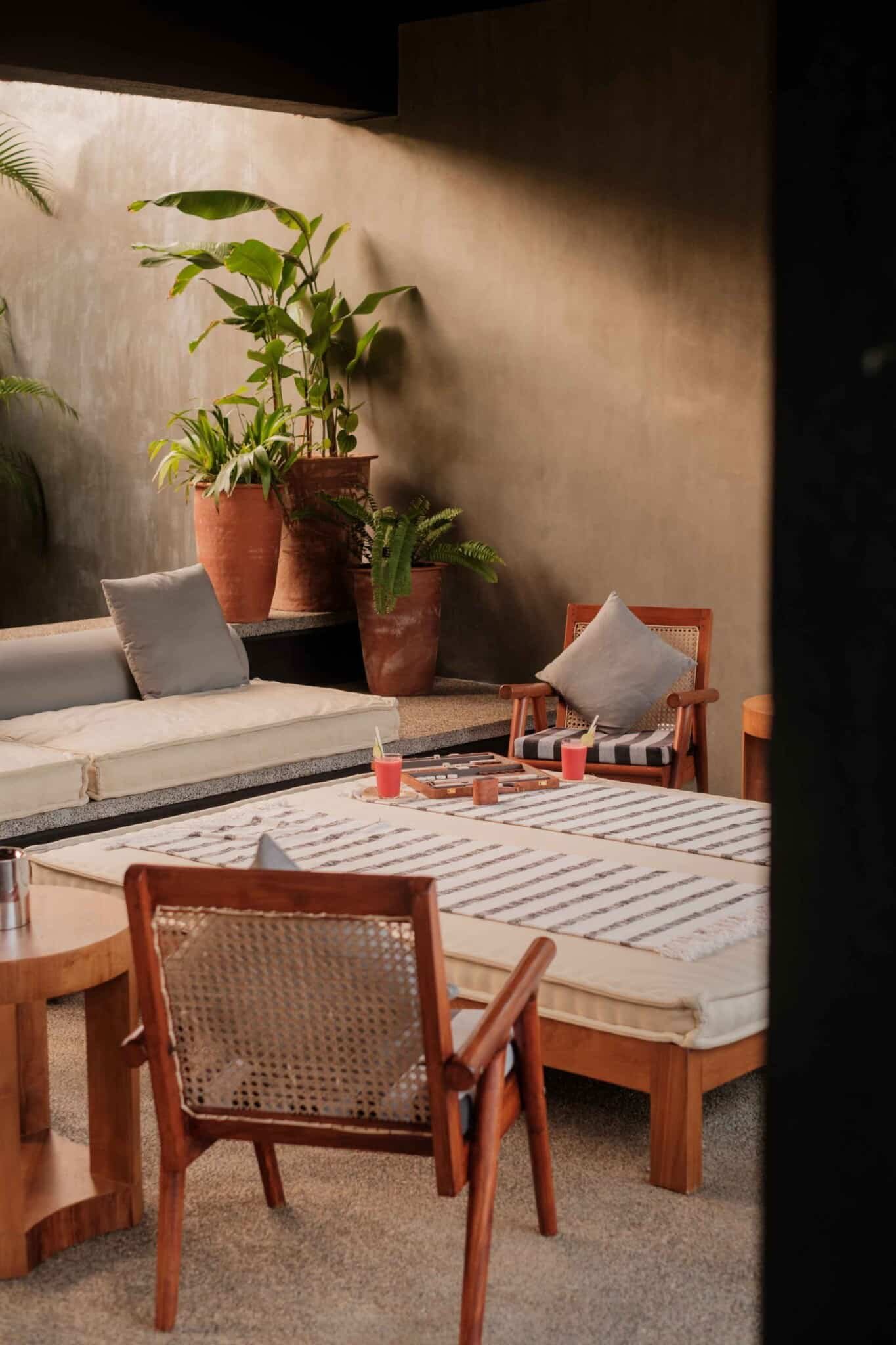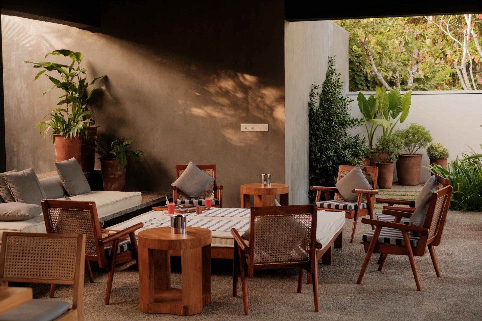 The space stays cool and airy throughout the day and opens directly to the pool and gardens.