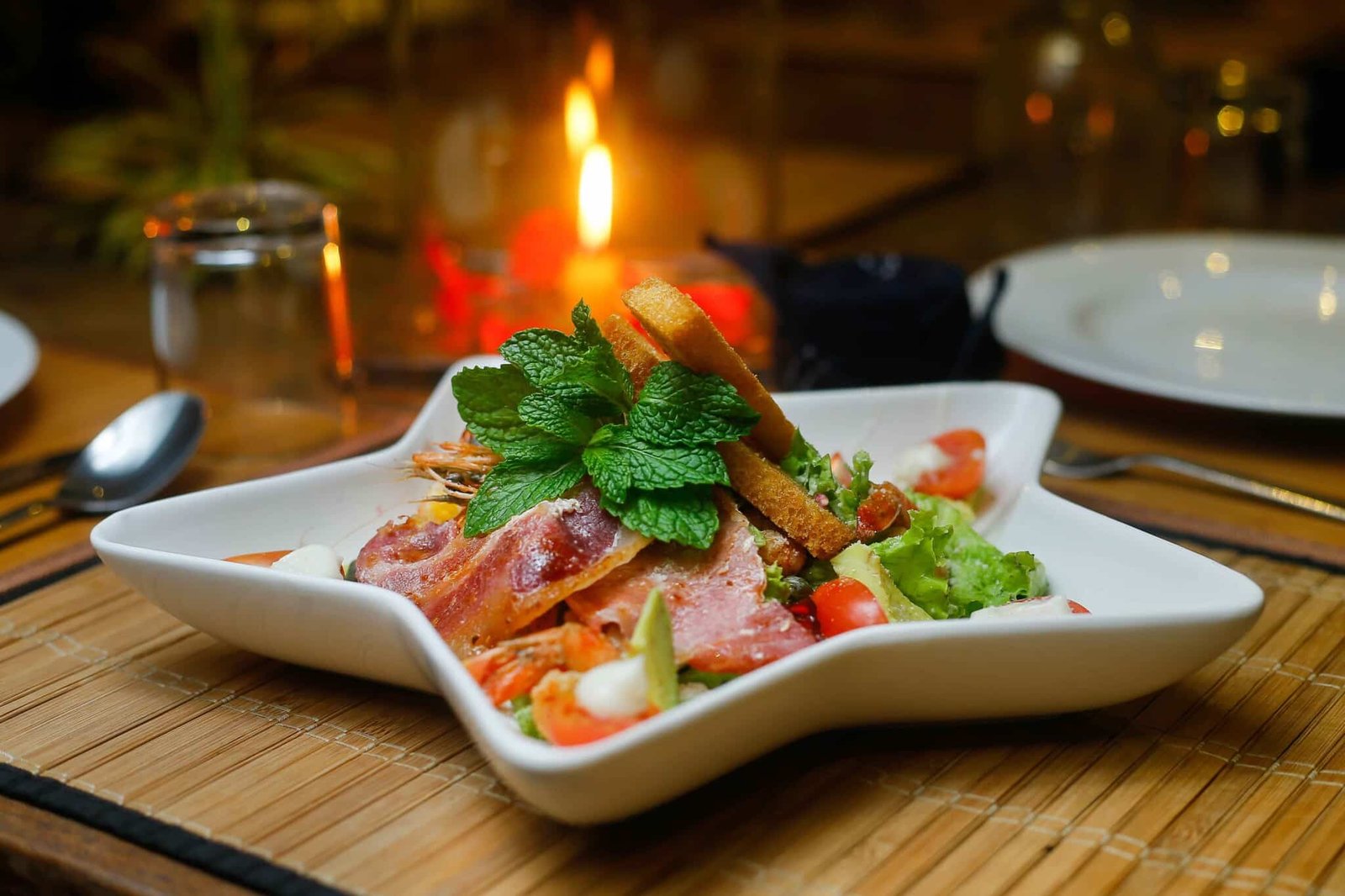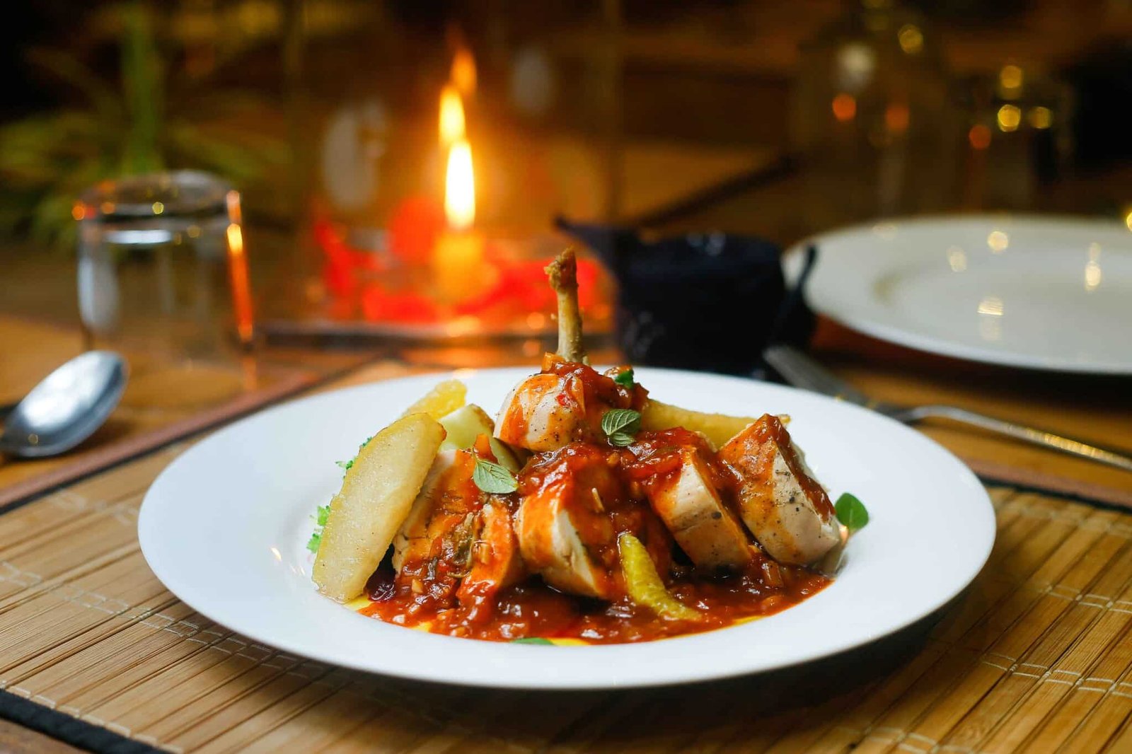 - Meals can also be enjoyed outdoors near the pool and garden.