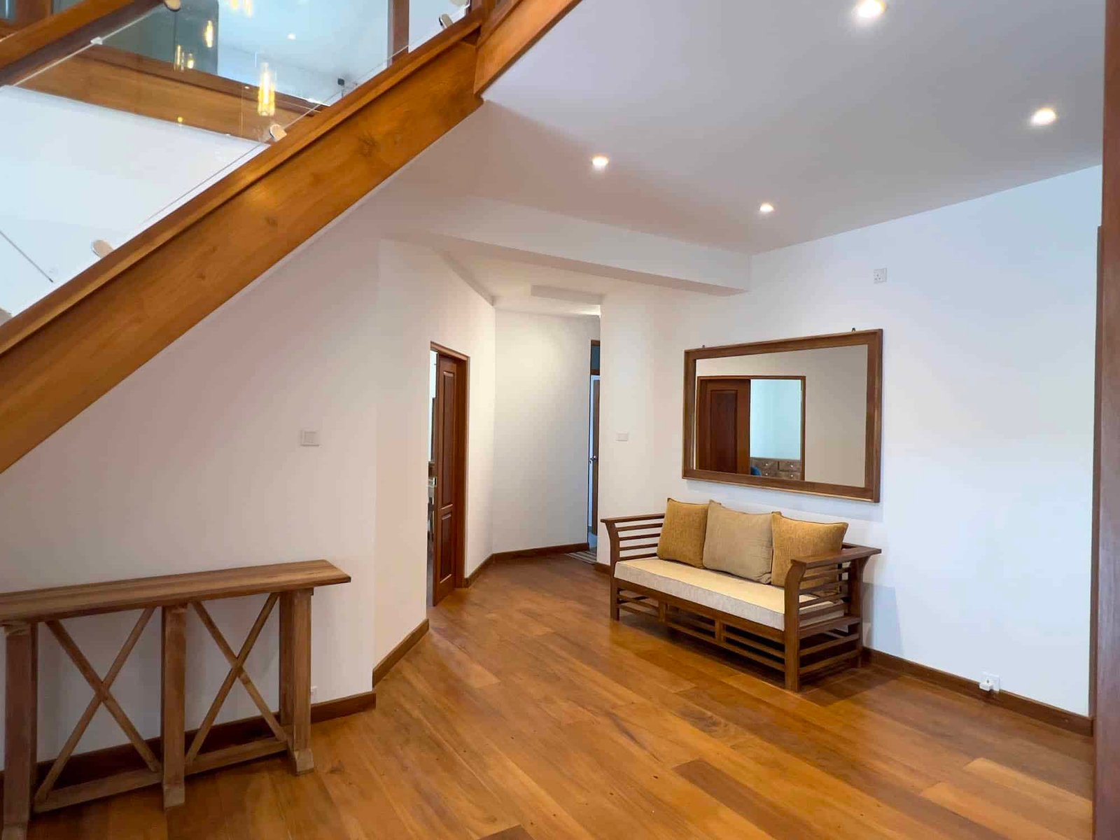 When you enter the villa, you will first see a small sitting area where guests can place their luggage, enjoy a welcome drink, and relax with cold towels.