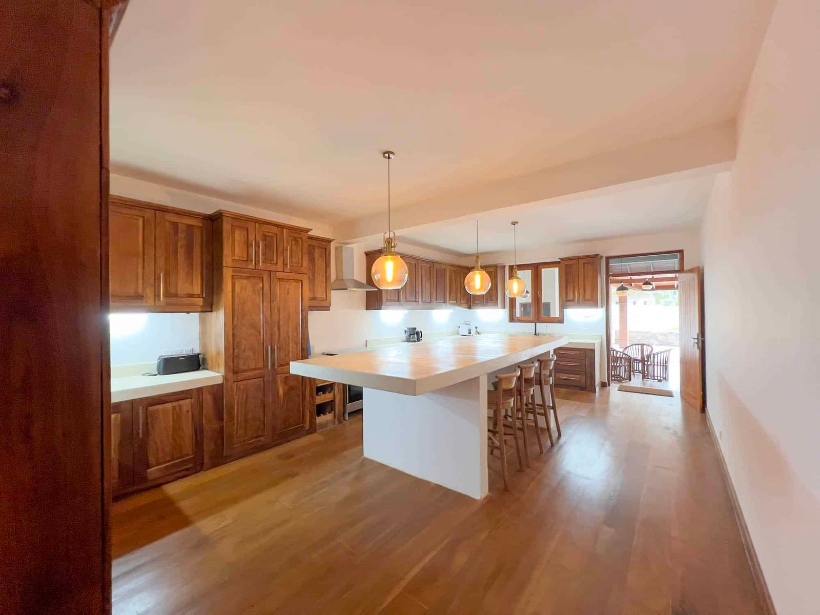 The kitchen is large, modern, and fully equipped with: