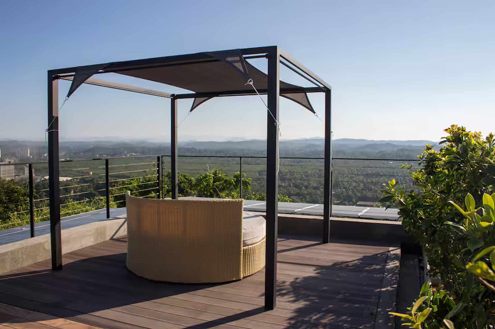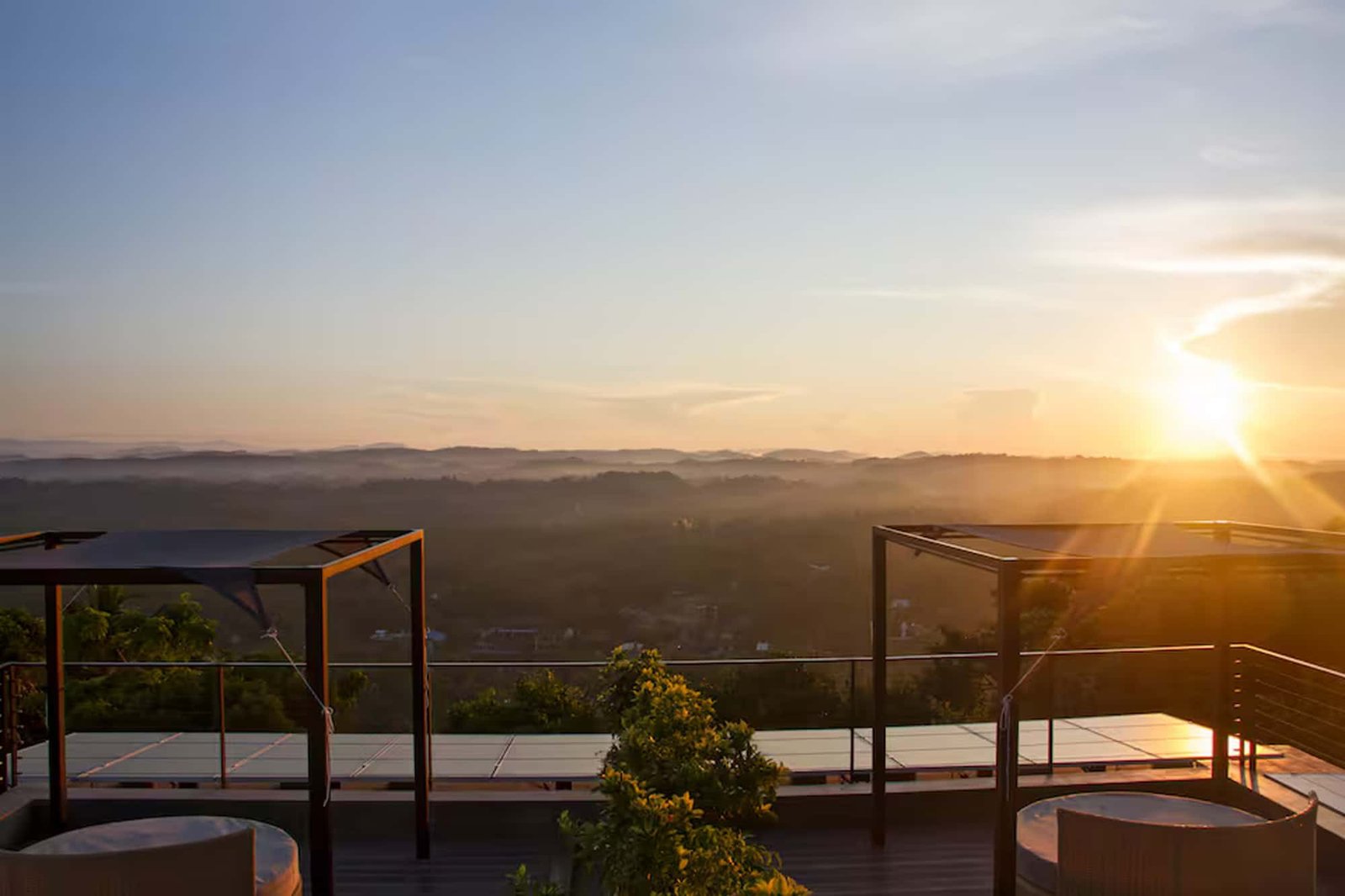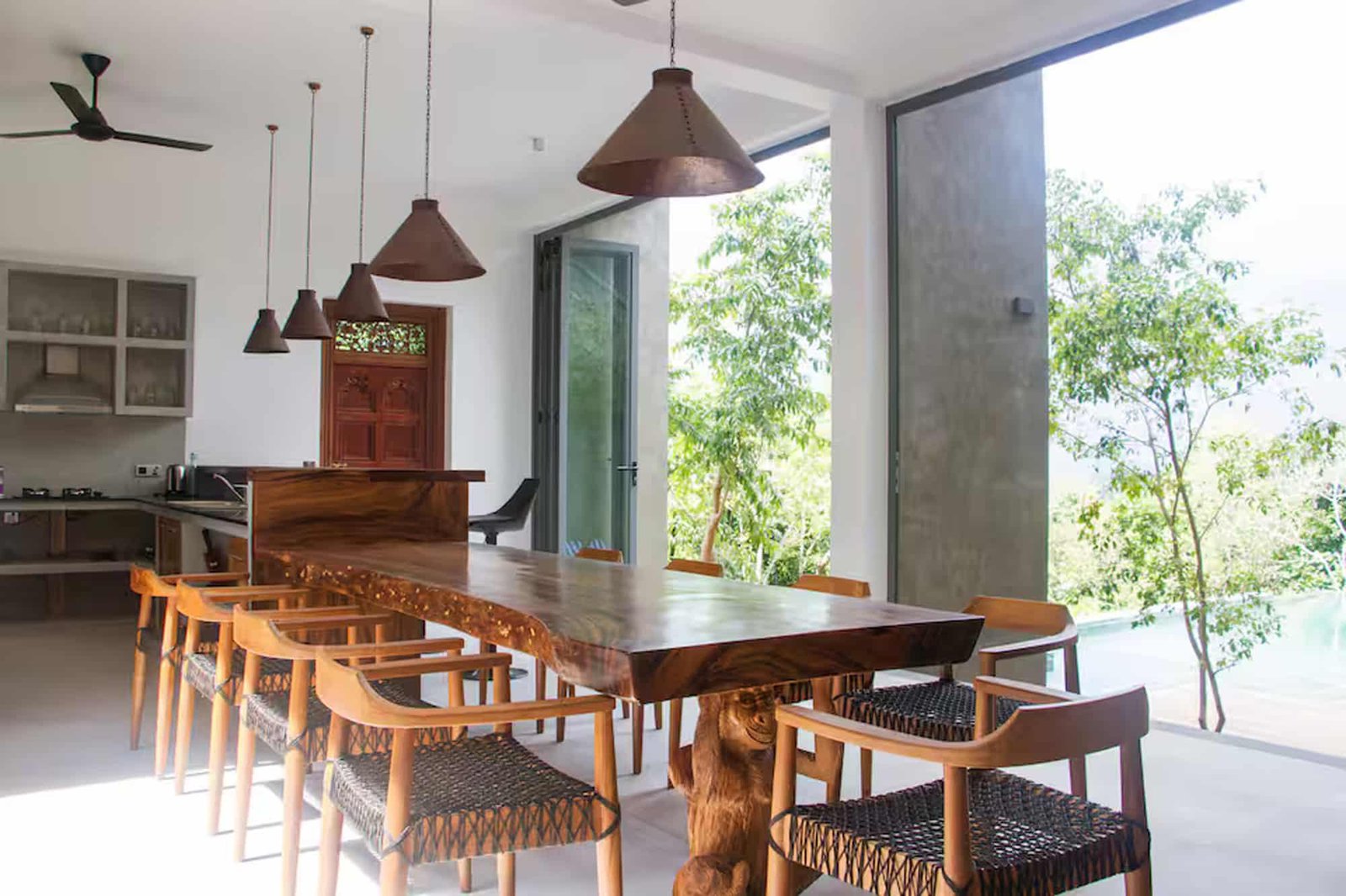 Each villa has its own private infinity swimming pool with a beautiful overflow edge. The pools face west, giving you amazing sunset views every evening. Outdoor spaces include pool decks and relaxing areas where guests can sit back and enjoy the peaceful surroundings of the hilltop.Dining Spaces