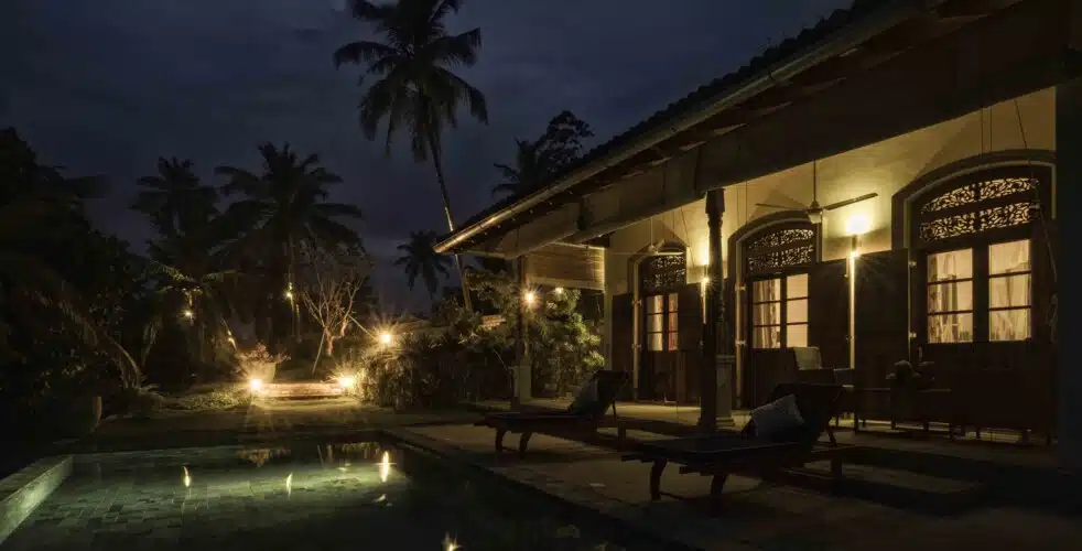 Perched on a gently elevated hill above a picturesque private lake, Three Sisters Plantation is a working estate cultivating tea, cinnamon, pepper, and coconuts. The biophilic design of the villa seamlessly integrates natural elements, encouraging guests to reconnect with nature and find peace in the lush surroundings. The villa’s peaceful ambiance makes it an ideal retreat for families and friends seeking relaxation and quality time together.